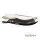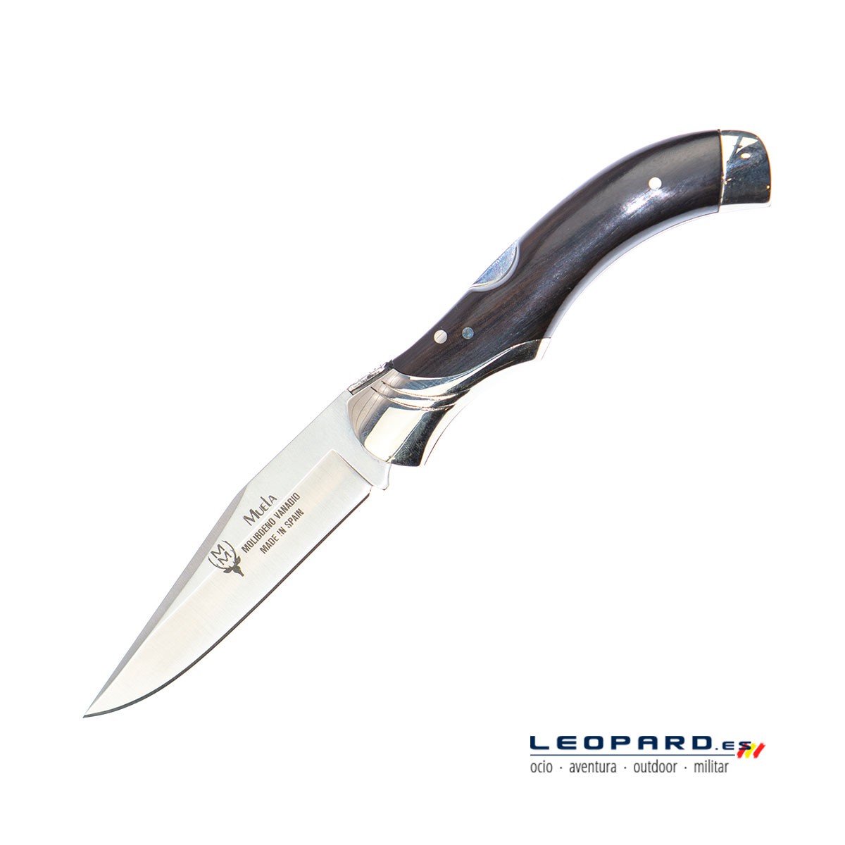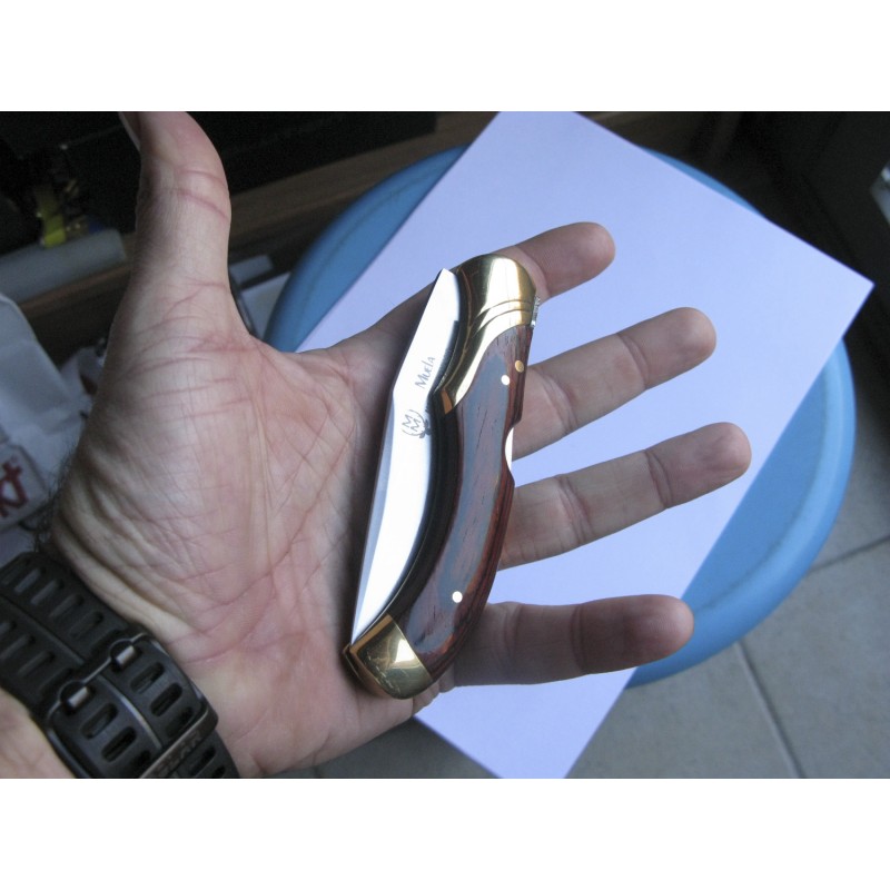 Navaja Muela GL-10 Granadillo. Su excesivo peso, su acabado a espejo no la hacen una navaja útil, a pesar de tener un buen acero es incomoda de llevar en el bolsillo, su apertura es imposible con una sola mano. Yo diría que es más una pieza de exposición o colección que de uso diario.