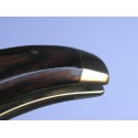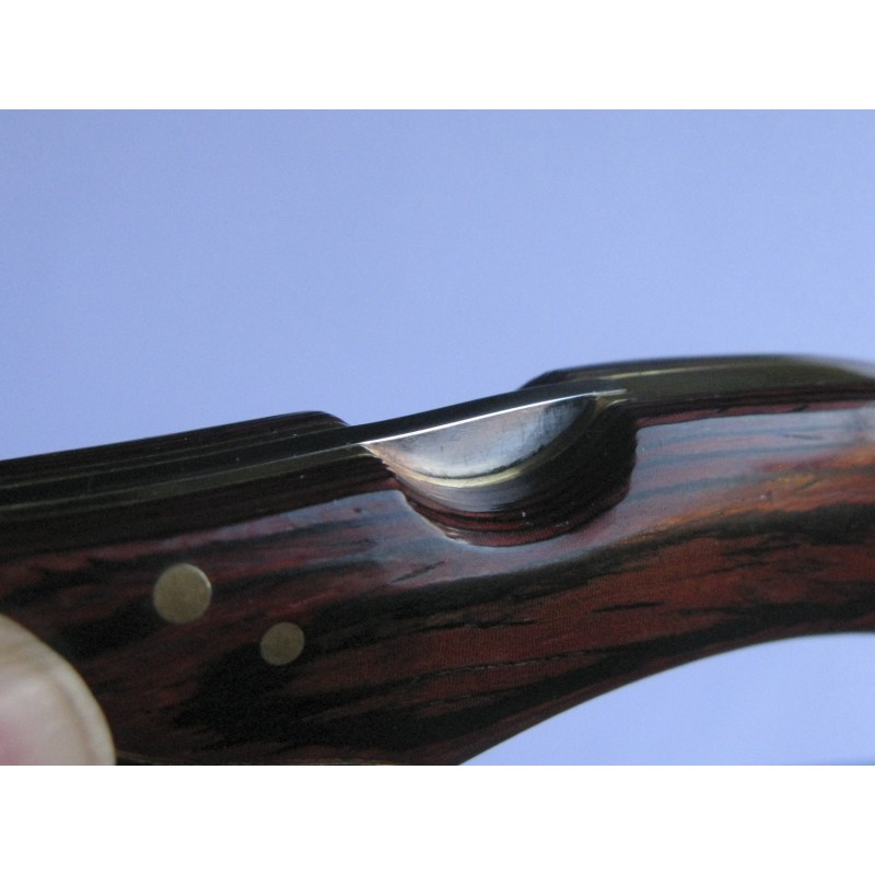 Navaja Muela GL-10 Granadillo. Detalle del final de las chachas, vemos que el latón del interior arañado por la hoja al ser abierta y cerrada.