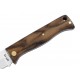 Esta navaja en particular dispone de un mango ergonómico fabricado en madera de nogal, un tipo de material natural de alta densidad que incorpora vetas irregulares en su estructura, de ahí que cada producto fabricado con esta madera sea único respecto a otro de similar producción.