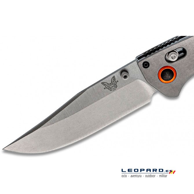 La particularidad de las navajas Benchmade reside en la tecnología Axis, un sistema de apertura-bloqueo desarrollada por el propio fabricante americano. Consiste en una barra que conecta el bloqueo con la apertura, aunque en este caso se llevará a cabo de forma manual a una mano, con el pivote situado en la parte trasera de la hoja.
