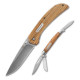 Para una pieza EDC, que cuente con un buen acabado es un valor añadido. En el caso de este combo de navajas, las cachas han sido diseñadas con madera de Zebrano. Se trata de una madera nobel, con veteados únicos en cada pieza.