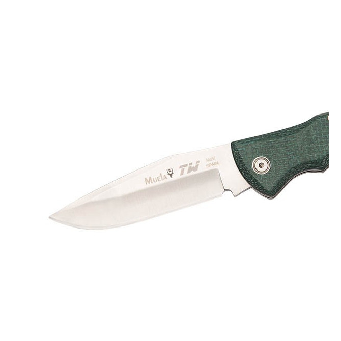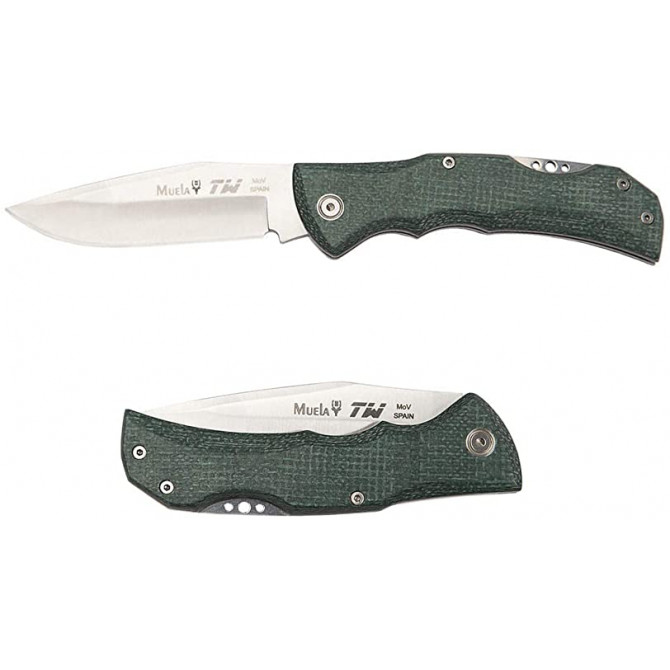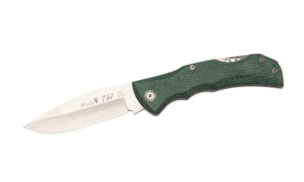 La navaja Muela TW-8G está fabricada con cachas de micarta yute de color verde.