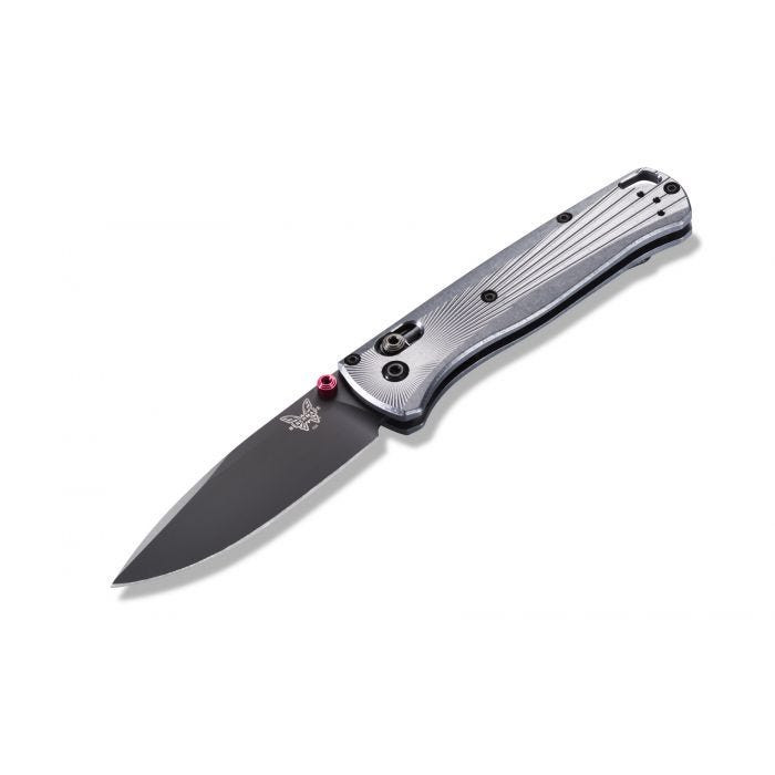 Una de las características más destacadas de la navaja Bugout 535BK-4 es el detalle en el diseño. La compañía Bechmande ha querido desarrollar una navaja potente, robusta y además elegante. La hoja negra contrasta con las cachas en color plateado. Además, contiene una serie de detalles en fucsia y el logo de la marca sobreimpresionado en la cuchilla.