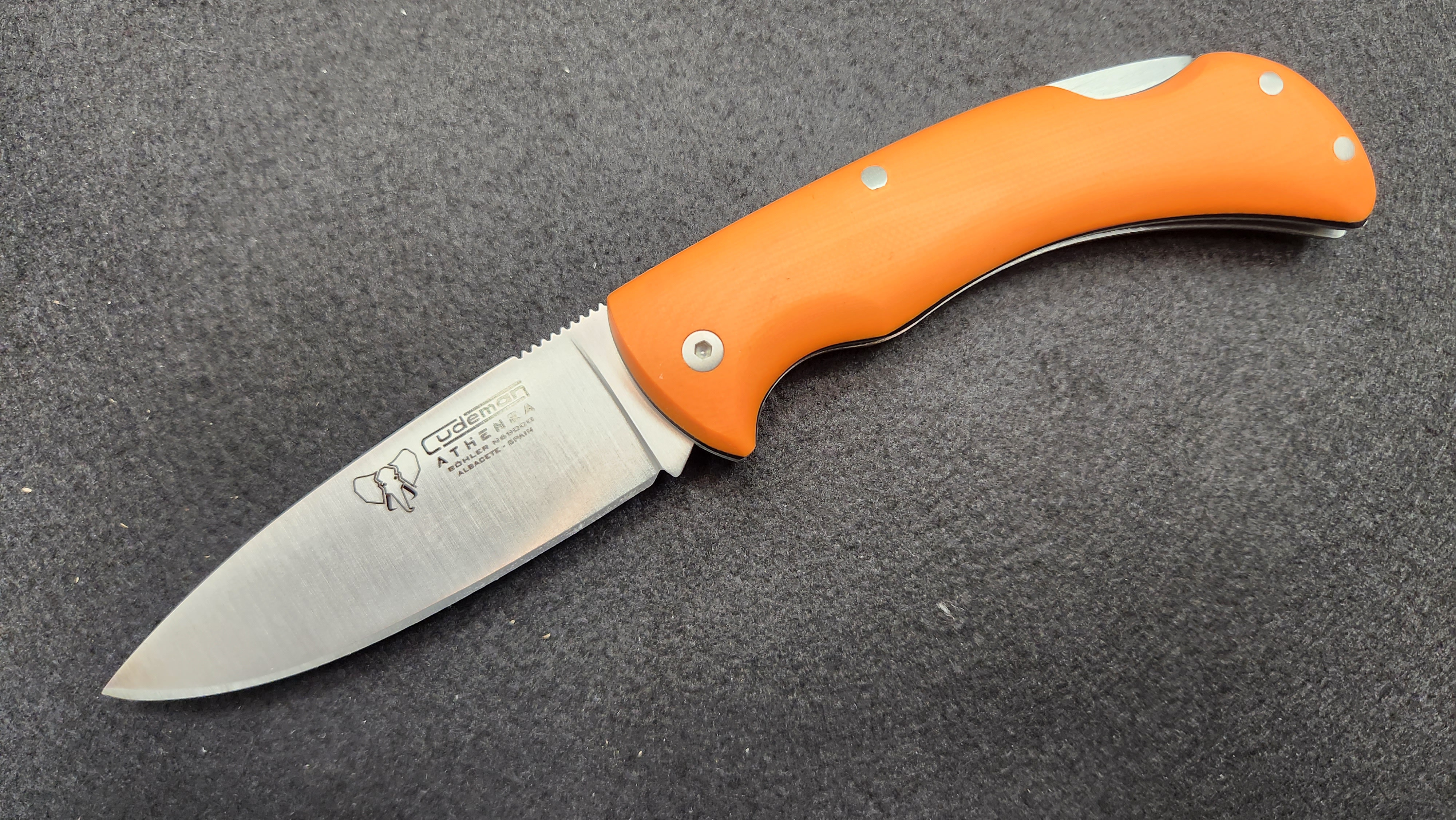 Leopard incorpora a catálogo una nueva serie del fabricante español Cudeman. La Athenea es una navaja EDC, y la hay en 4 versiones. Hoja de acero Böhler N690Co tipo drop point. La 345-J incorpora cachas ergonómicas de micarta naranja, con bloqueo back lock.