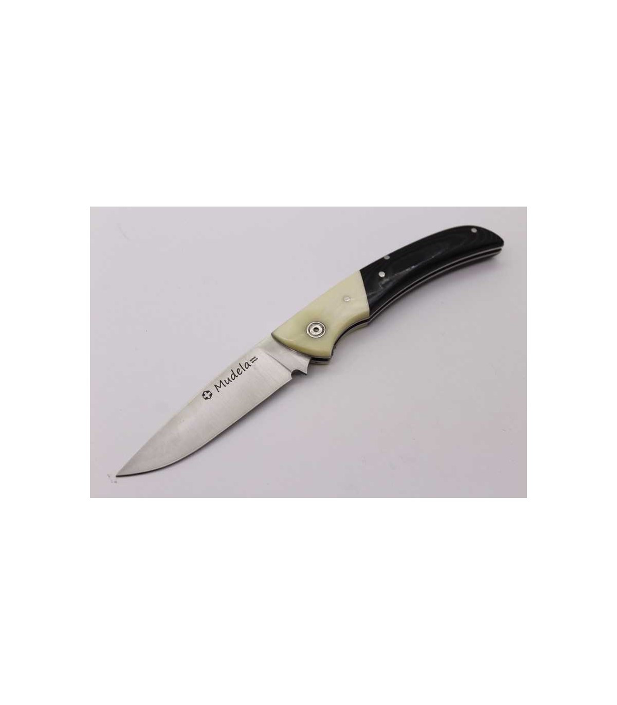 Otra de las navajas fabricadas por Arte Mudela es el modelo AL-84.3. Es una navaja de monte, con hoja fabricada en acero inoxidable MoVa-380. Las cachas que lleva incorporadas son de micarta marfil y negra. Tiene sistema de pistón.