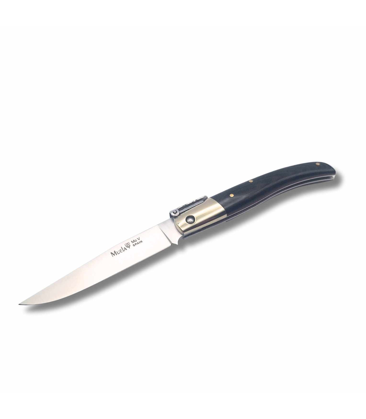 Las cachas de la navaja Muela Palanquilla PQ-9M son de Micarta Negra, un tipo de material que resiste muy bien al paso del tiempo gracias a su estructura agrupada. El proceso de creación de este producto comienza agrupando láminas de tela de lino con resina de epoxi, para posteriormente unirlas a alta presión.