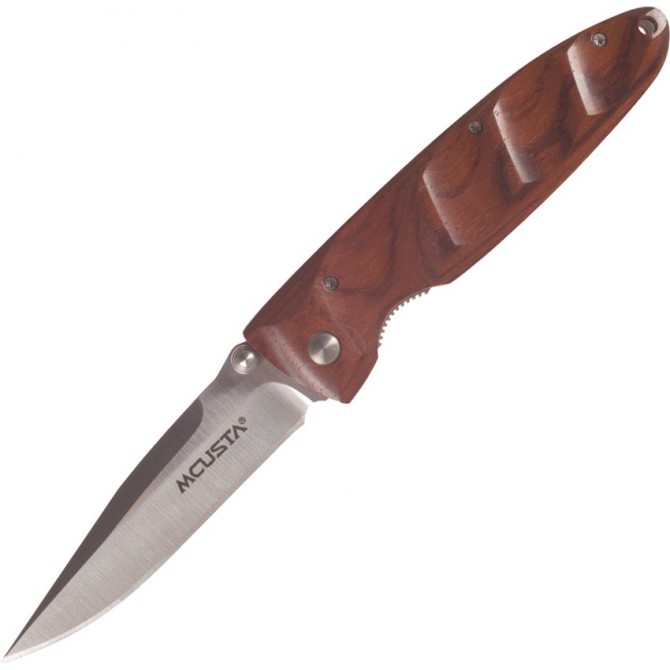MCU14 NAVAJA MCUSTA BASIC FOLDER COCOBOLO HANDLES Description: Mcusta Basic Folder Cocobolo. 4 1/4" closed linerlock. VG-10 stainless blade (RC 59-60) with ambidextrous thumb studs. Contoured Cocobolo finger groove handles. Pocket clip. Features a specially designed Teflon washer system for silky smooth action. Hand finished. Country of Origin: JAPAN