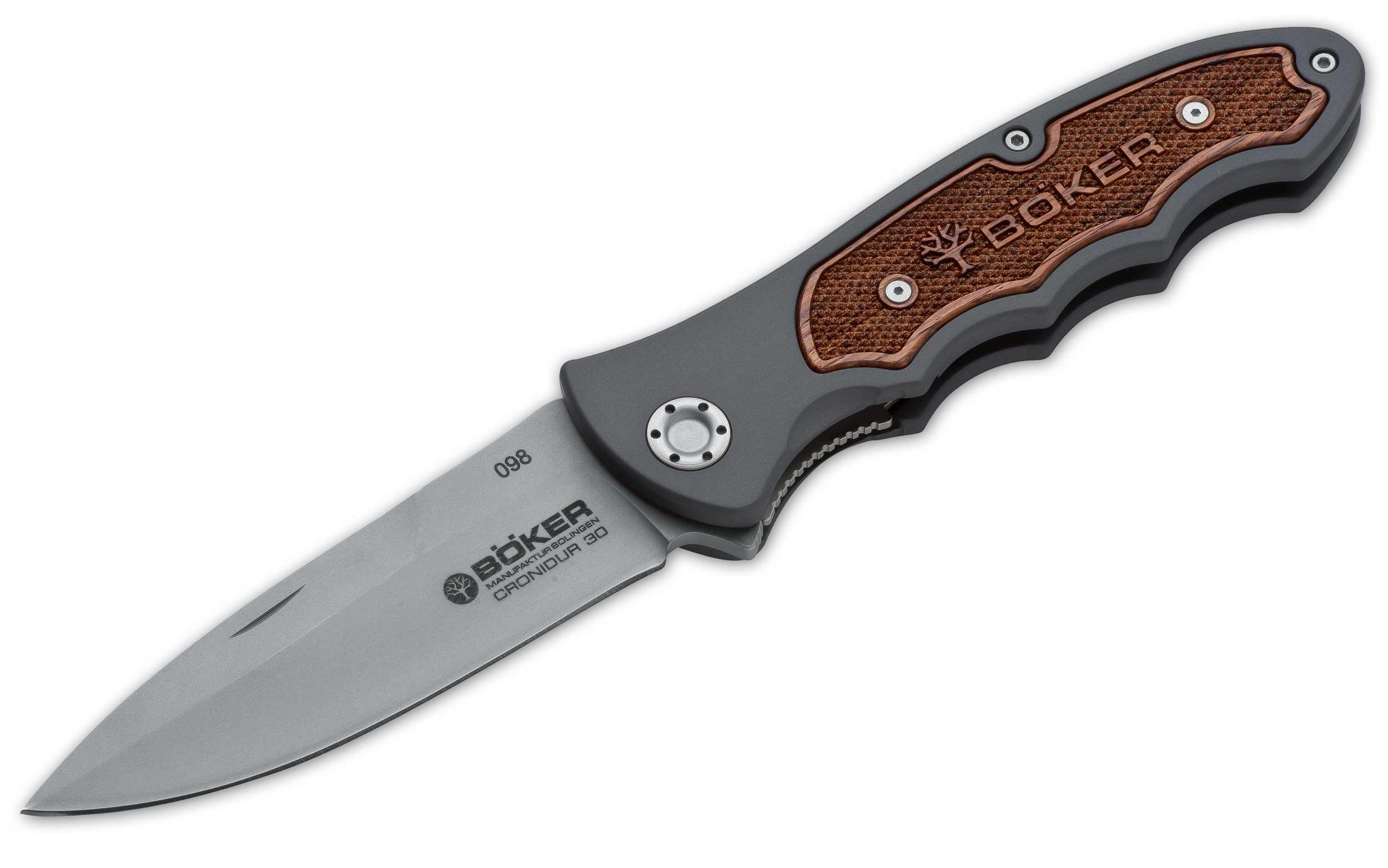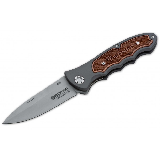 CRONIDUR 30 STEEL. Cronidur 30 is the latest of the premium steels coming out of the space shuttle program, and Boker is the first to have it available to the sporting knives industry. Cronidur 30 was developed for use in the aircraft and aerospace applications, where component durability, reliability and long life are a must. Cronidur 30 is superior in corrosion resistance to 440C stainless steel. Large carbides evident in other high grade steels do not exist in Cronidur 30. Instead, there is a homogenous structure of finely dispersed carbon nitrides. With a Rockwell hardness of 58 and the blade composition needed, these blades will sharpen and hold an edge unlike any other steel currently available. This premium steel is now available in our TURBINE model, two new Titan patterns, and for the ultimate hunting knife, in our classic Lockback pattern.