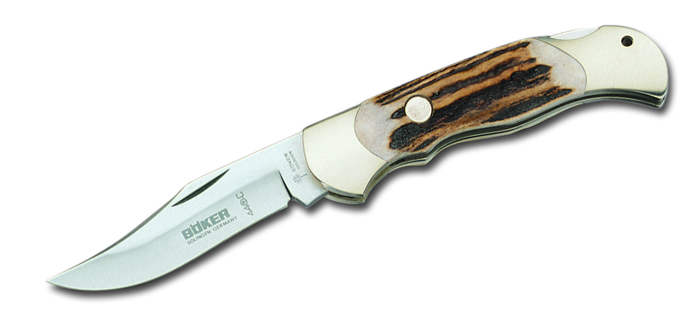 Here's one knife that's right for all of your cutting jobs. Optima gives you the flexibility you need: a choice of fine handles, plus interchangeable locking stainless steel blades that switch out in seconds, then lock securely in place. This model features stag horn handles, framed by distinctive nickel silver bolsters. Includes 440C stainless steel blade. Closed length: 4 3/4". Blade length: 3 3/8".