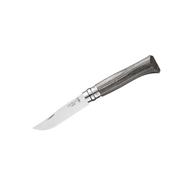 Para la fabricación de la hoja de esta Opinel Nº8 Laminada se ha utilizado un tipo de acero anticorrosivo gracias a la adición de cromo, que no requiere ningún mantenimiento especial. Además, posee un alto contenido de carbono de al menos 0,40% para obtener como resultado un excelente filo.