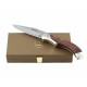 Los desarrolladores de Muela han escogido palo violeta y alpaca (18%) para la fabricación de las cachas de esta navaja. El palo violeta es una madera de origen natural que ofrece una buena resistencia y robustez.
