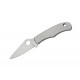 La navaja más pequeña de Spyderco construida en acero 3Cr13 y cachas de acero inoxidable.