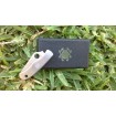 Este es el pequeño estuche en el que llega, acompañado de una bolsita de plastico interior donde estará protegida la navaja.