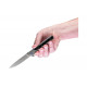 Las cachas de este cuchillo Cavalier están fabricadas en aluminio anodizado de color gris e incluye incrustaciones en fibra de carbono. Este tipo de material presenta una buena resistencia a los impactos y a la humedad.