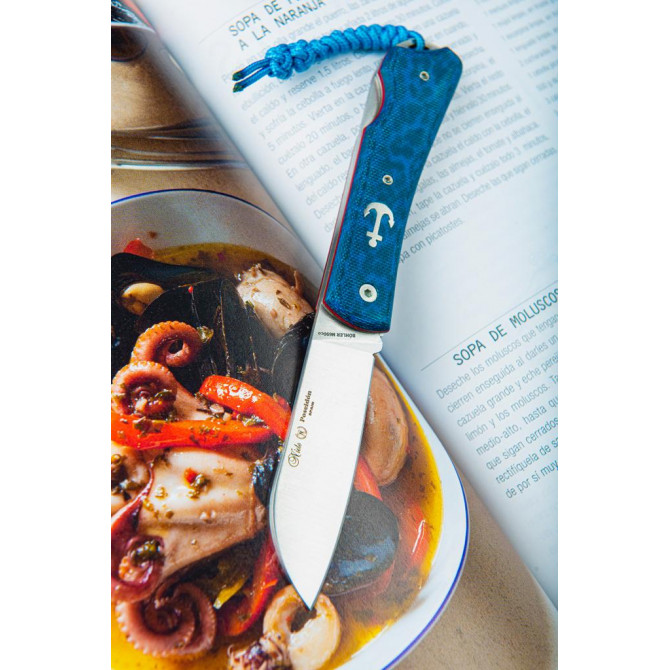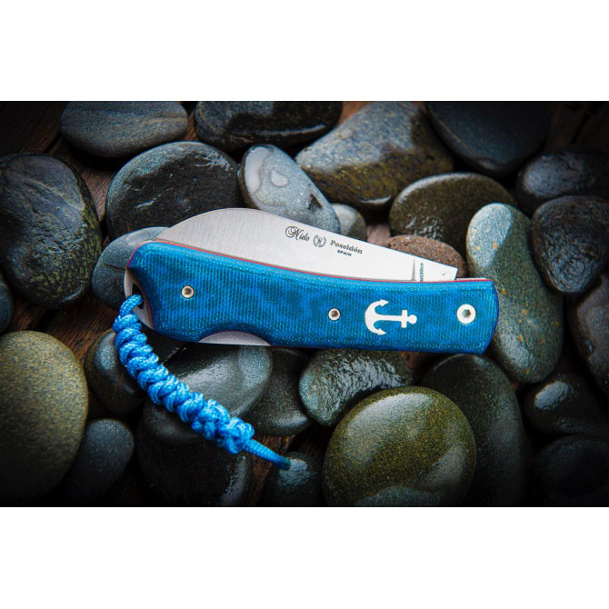 Los desarrolladores de la compañía española Miguel Nieto han diseñado esta navaja Poseidón con hoja estilo Sheepsfoot fabricada en acero inoxidable Böhler N690Co. Las cachas en color azul están diseñadas en Katex e incluye un sistema de bloqueo Back Lock. Se trata de una pieza idónea para cualquier actividad del día a día.