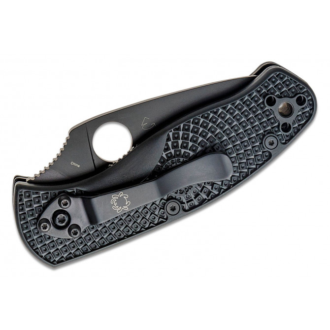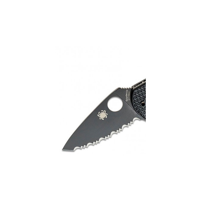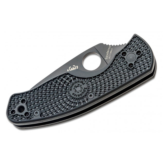 La compañía Spyderco ha escogido G-10 para la fabricación de las cachas de esta navaja. Se trata un material formado a partir de fibra de vidrio impregnada en resina epoxy, que se puede tintar en diferentes colores.