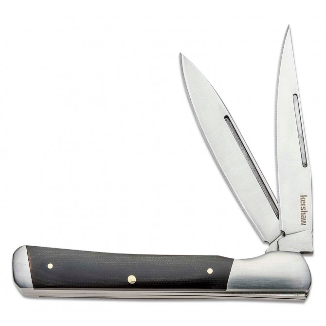 La compañía Kershaw ha optado por escoger Micarta pulida para la fabricación de las cachas de esta navaja. Se trata de un material que está formado por láminas de tela impregnadas en resina que se someten a alta presión.