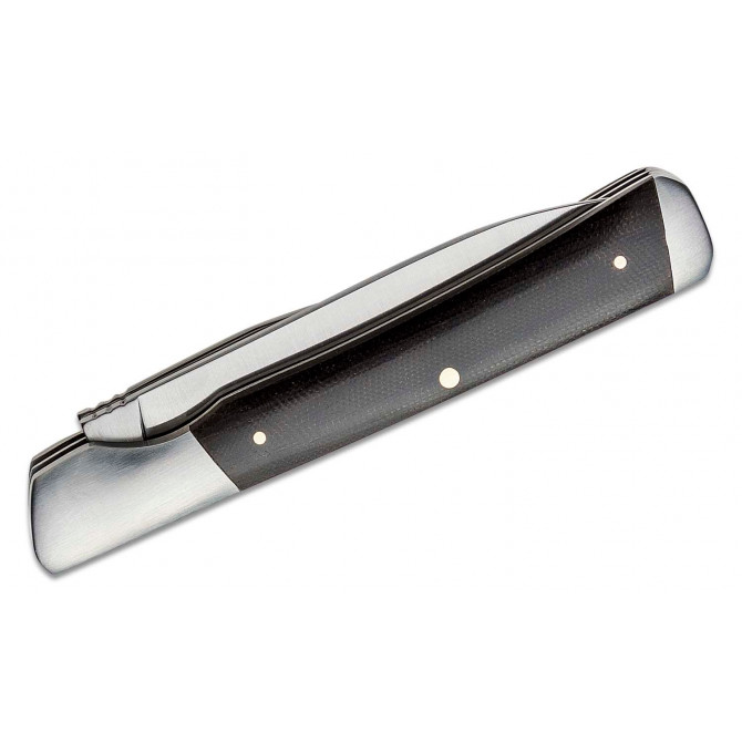 La característica más destacada de este modelo es que incorpora dos cuchillas con diferentes tipos de hoja. Una de ellas presenta un estilo Clip Point y la otra Spear Point, dos perfiles perfectos para utilizar en el día a día. Las cachas están fabricadas en Micarta en acabado color negro. Incorpora resorte por presión Slip Joint.