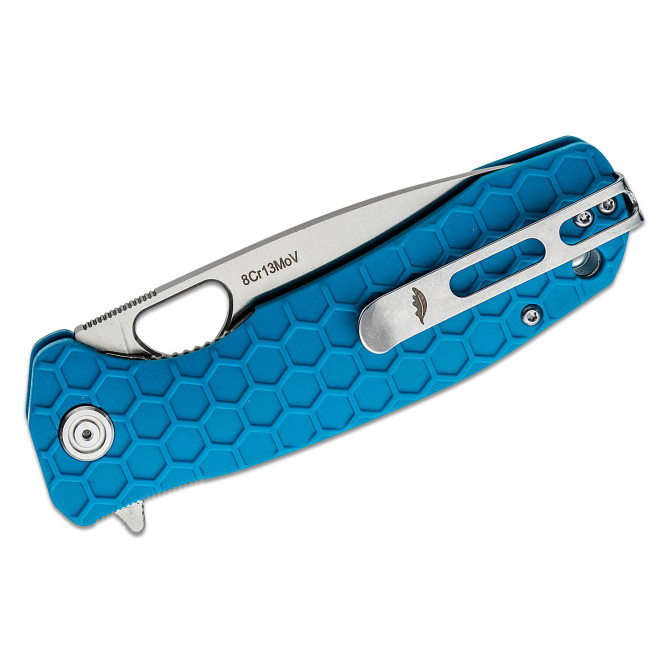 Una de las prestaciones destacables de la navaja Honey Badger Drop Point es su hoja fabricada en acero 8Cr13MoV. Este tipo de acero es sencillo de afilar y se obtienen filos realmente punzantes, por lo que su mantenimiento además de sencillo, proporciona impecables resultados. A su vez, gracias a su contenido en cromo tendrá resistencia a la corrosión, perfecto para usarlo en entornos con climas húmedos.