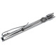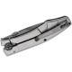 Esta navaja Innuendo ha sido diseñada por el famoso Les George, por lo que su diseño es único. Una cacha de acero inoxidable en un color gris plata de grosor reducido para llevarla fácilmente en el bolsillo. Hoja de acero 8Cr13MoV y con un recubrimiento de PVD para una total resistencia. Se libera mediante bloqueo FrameLock. Clip diestro con posibilidad de ser zurdo.