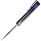 El Appalachian Drifter Púrpura tiene un estilo de hoja caracterizado por una curva cóncava en el filo, lo que provoca que la fuerza se concentre en una punta muy puntiaguda. Este estilo llamado Clip Point hace que la punta sea más aguda, y también más baja para un mayor control. La punta es robusta y controlable, y el filo de la hoja proporciona un buen corte. Su filo recto de gran tamaño ayudará a tener cortes de mayor superficie.