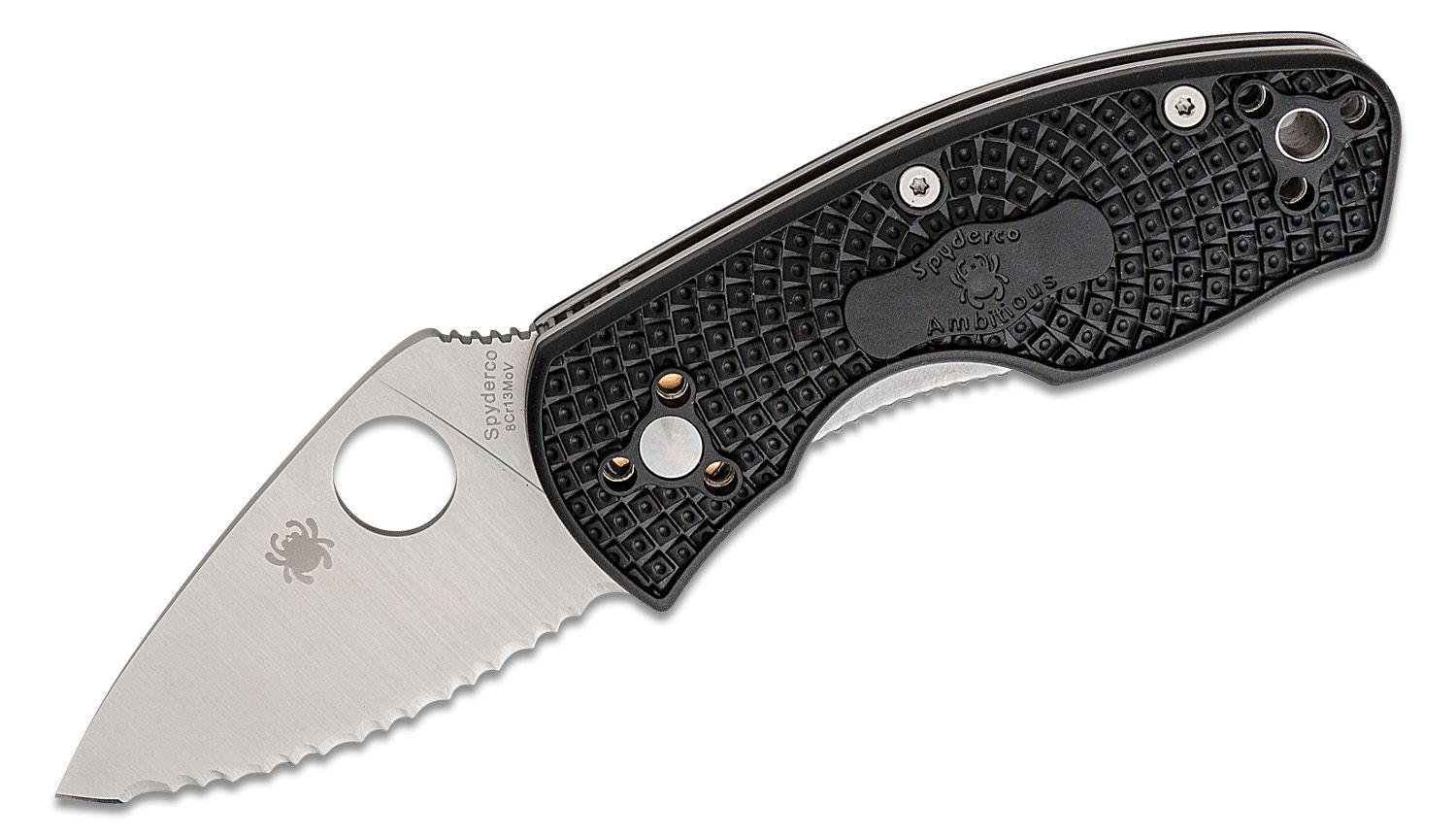Ya tienes a la venta en Leopard una nueva navaja EDC, fabricada por la empresa americana Spyderco. En este caso es el modelo Ambitious Lightweight con hoja serrada en acero inoxidable 8Cr13MoV. Las cachas que le han incorporado son de fibra reforzada con nylon (FRN), con agujero para cordón fiador y clip de bolsillo.