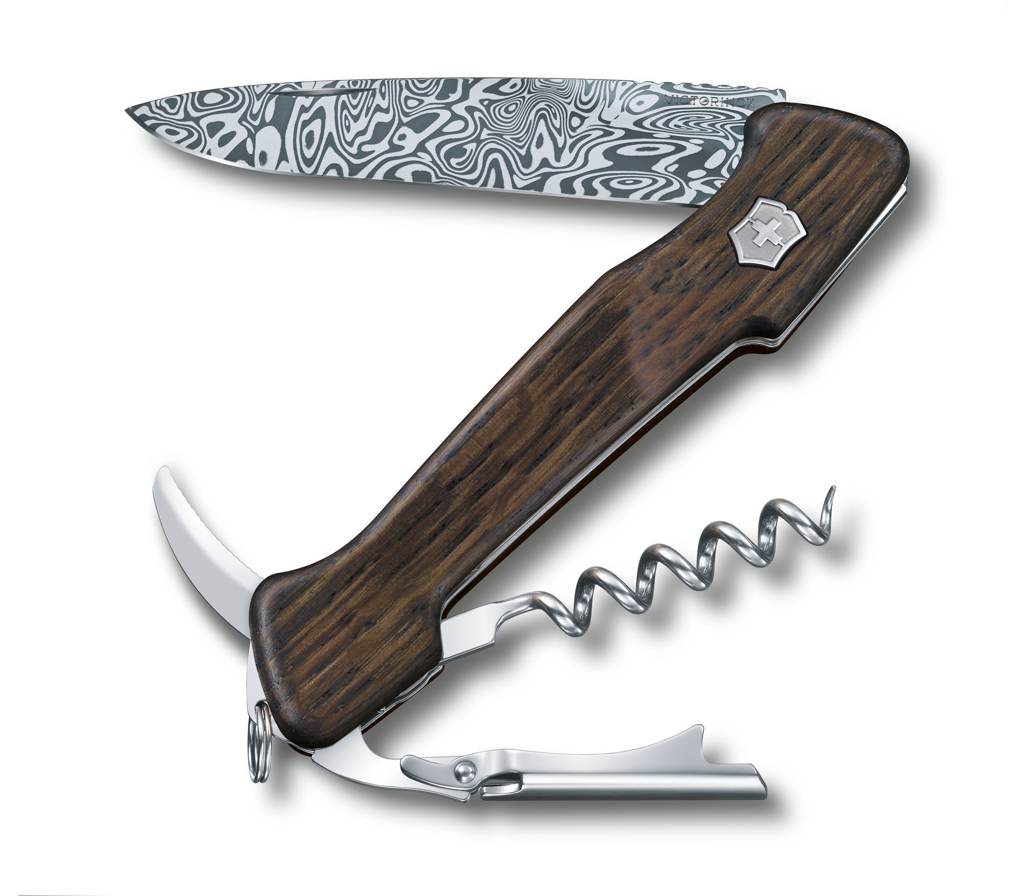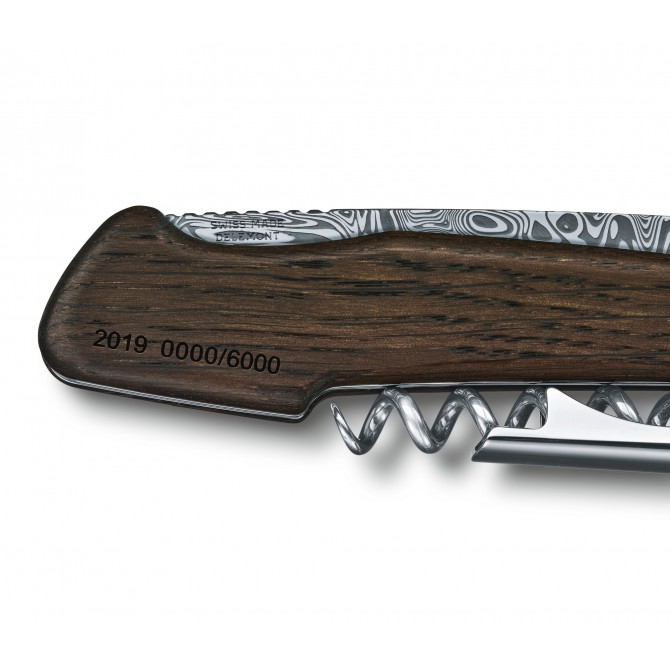 Los diseñadores del departamento de I+D de Victorinox han escogido un tipo de madera de roble ahumada para la construcción de las cachas de la Wine Master Damast. Este material natural ha atravesado un proceso de ahumado para mejorar sus prestaciones y su exclusivo acabado.