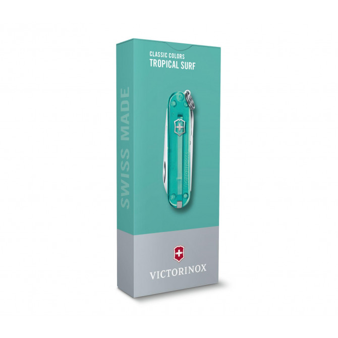 Todas las piezas de las 7 utilidades que incorpora esta Classic SD verde pastel traslúcido están fabricadas en acero de tipo inoxidable resistente a la corrosión producida por el contacto con óxido ferroso, por lo que es un modelo ideal para el uso en el día a día, ya que tiene un rendimiento más que aceptable al paso del tiempo.