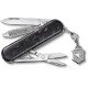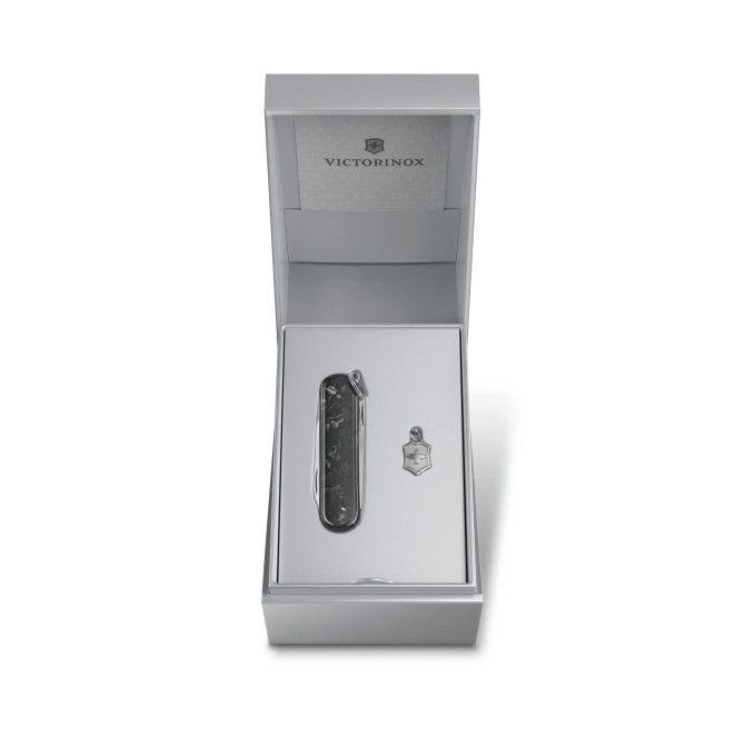 Las cachas de esta navaja de bolsillo, compacta están fabricadas en Fibra de Carbono muy duradera y además le dan un toque elegante y exclusivo. Además incorpora un llavero con mosquetón con el logo de la propia marca Victorinox.