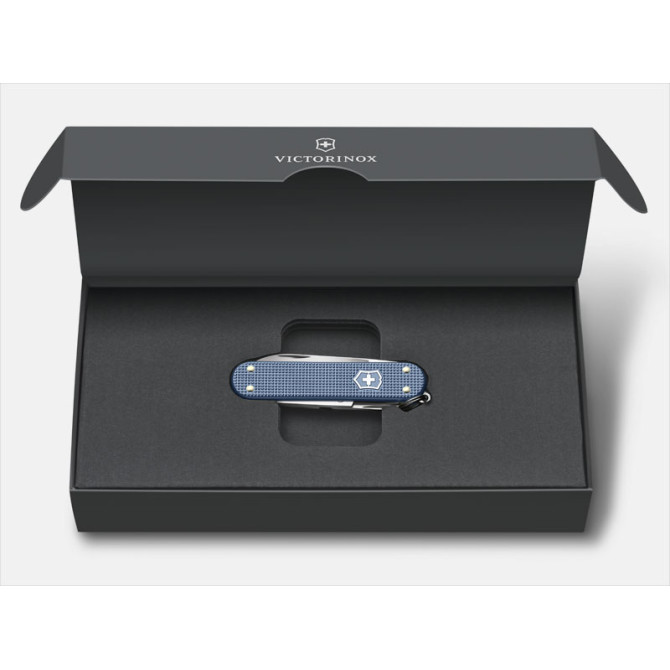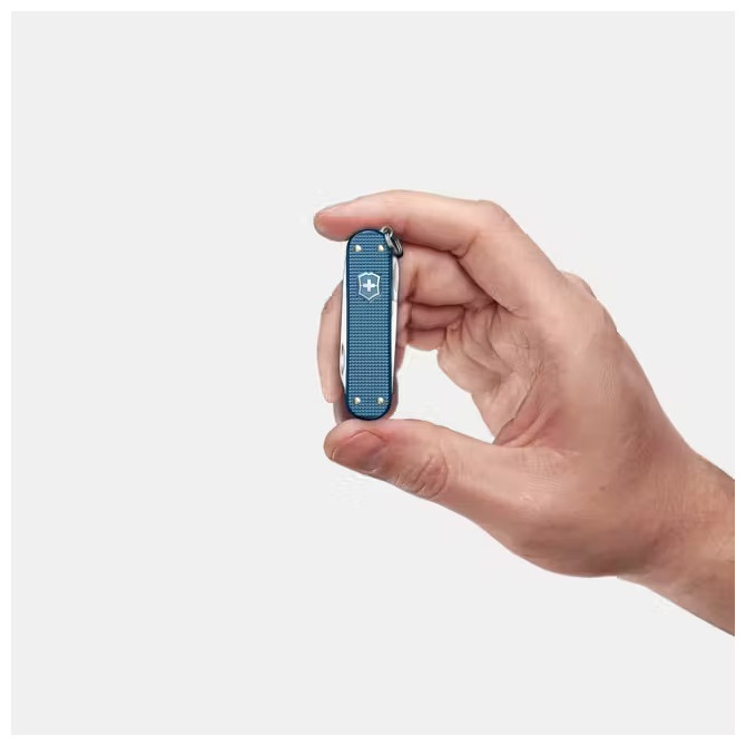 Las cachas Alox con tonos azulados caracterizan la colección de este año. Grabadas con aluminio, en relieve y envueltas en una cubierta de óxido anodizado resistente a la corrosión, hacen de las navajas Classic SD Edición Limitada unas piezas tanto llamativas como duraderas.