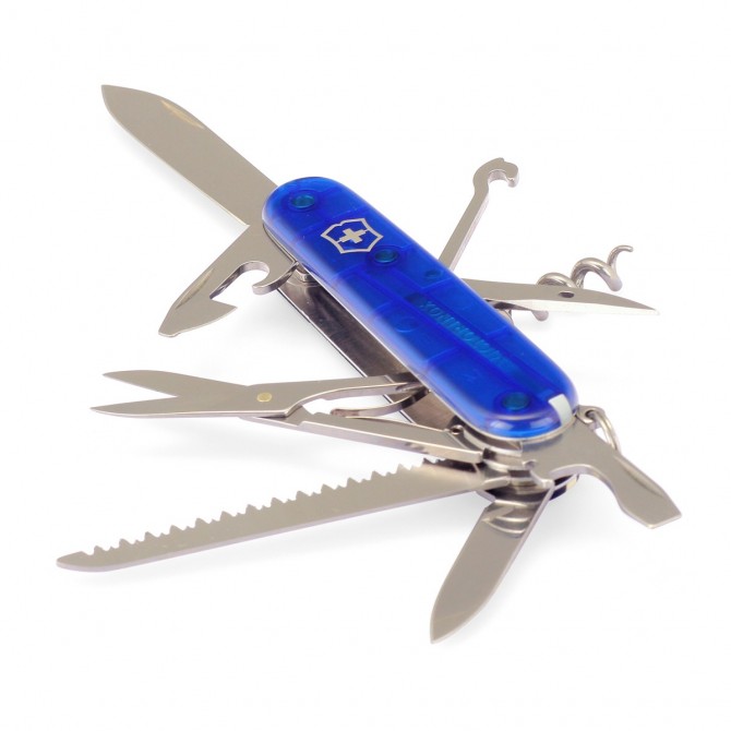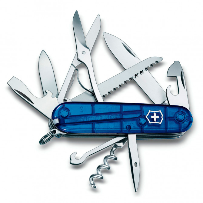 La navaja Huntsman Azul Translúcido es la herramienta ideal para el uso diario y para su utilización en montaña o campo debido a la incorporación de la sierra para madera entre sus funciones. Además, su pequeño tamaño y peso la convierte en un producto exclusivo y práctico.