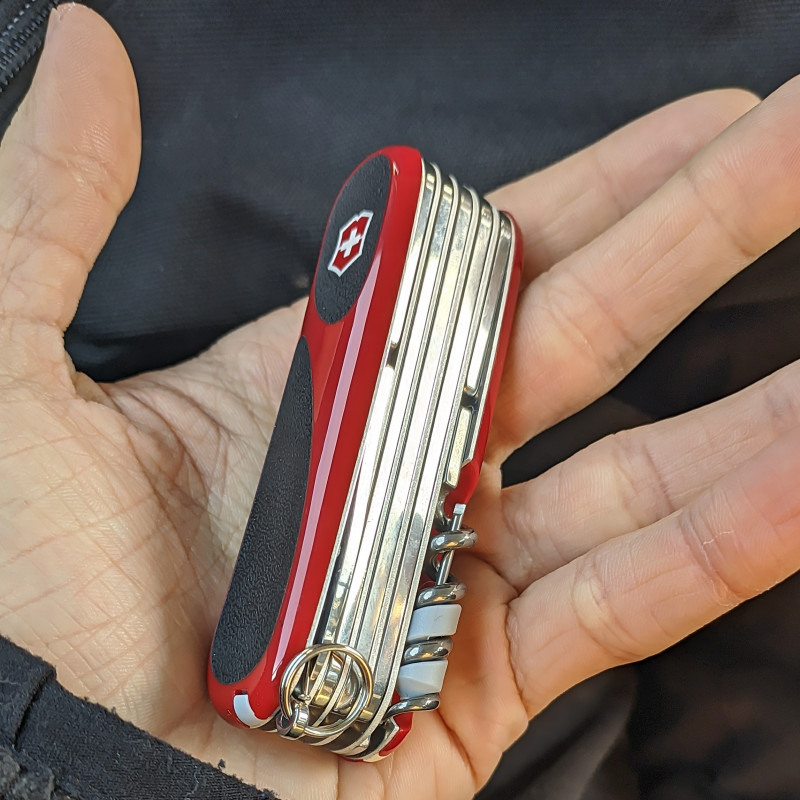 La swisschamp es una navaja multisusos con un gran número de herramientas pero plegada no ocupa demasiado