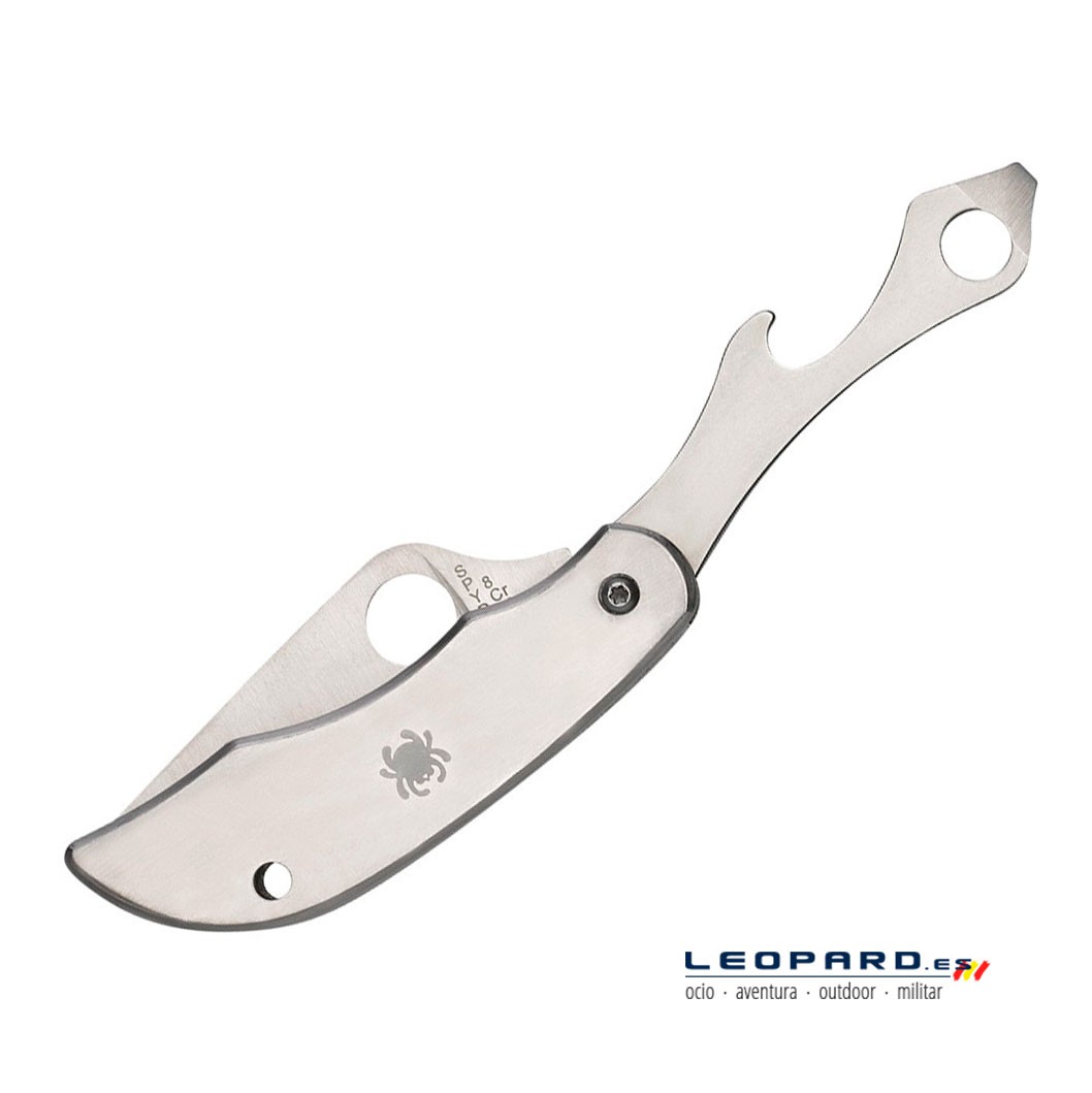 ClipiTool Bottle Opener - 2 5/8” closed non-locking slip-joint folder features stainless standard edge blade with thumb hole, and bottle opener with screwdriver tip. Stainless handles with etched Spyder emblem. Stainless pocket clip.