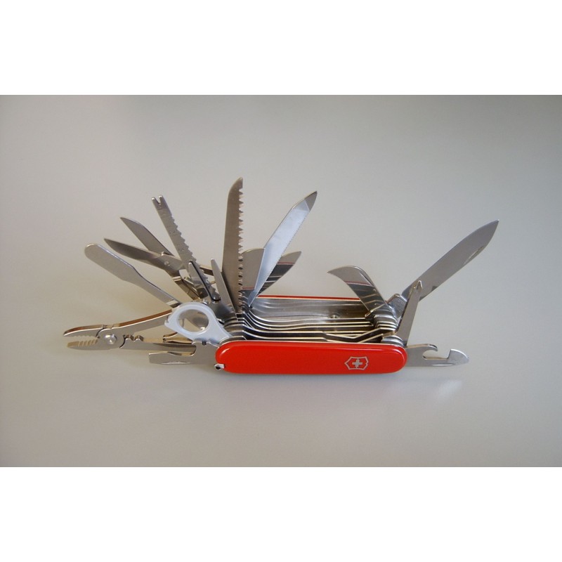 La Victorinox Swisschamp es una navaja multiusos suiza, que posee un total de 33 funcionalidades diferentes, todas ellas fabricadas en acero inoxidable. Este modelo es el más vendido por su funcionalidad, ya que incorpora hoja grande & pequeña, destornilladores y limas, entre muchos otros elementos de alto rendimiento.
