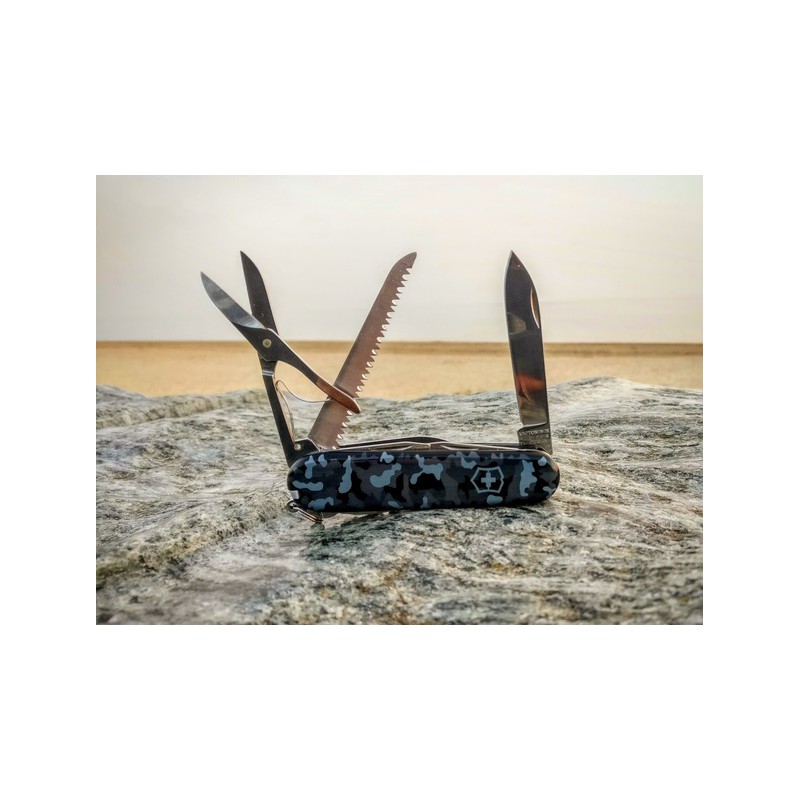 La navaja Huntsman Camuflaje Navy es la herramienta ideal para el uso diario y para su utilización en montaña o campo debido a la incorporación de la sierra para madera entre sus funciones. Además, su pequeño tamaño y peso la convierte en un producto exclusivo y práctico.