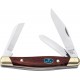 3 1/4" closed. Clip, spey and sheepsfoot blades. Rosewood Dymondwood Series. Knives have 420HC stainless blade(s) and Rosewood Dymondwood handles with brass bolsters and inlay shield.