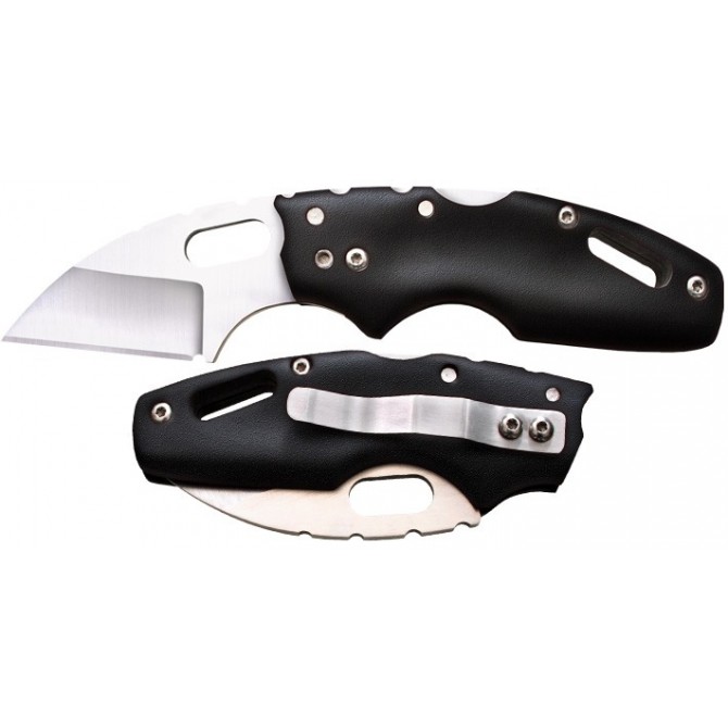 Los desarrolladores de Cold Steel han diseñado la cuchilla de esta navaja en un estilo Wharncliffe o Punta de acantilado, que destaca por que el lomo va descendiendo hacia la punta.