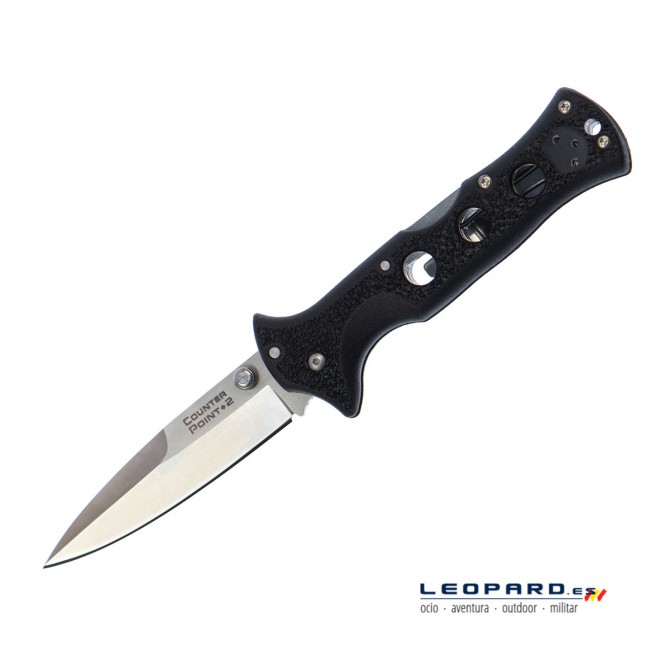 Esta navaja ofrece las mismas prestaciones que el cuchillo botero Counter TAC, pero con un tamaño más reducido. La hoja presenta la forma típica de los boteros con un falso doble filo y está fabricada en acero 440C. Las cachas presentan unos refuerzos de acero para aportar rigidez y dureza al conjunto. A pesar de su pequeño tamaño ofrecen un agarre inmejorable, están aligeradas mediante orificios y forman la guarda para proteger la mano de la hoja.
