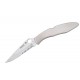Hoja en acero VG-10 más gruesa en la punta para mayor resistencia con un reducción de peso a lo largo de la navaja. Las cachas son de acero inoxidable perfecto para el grabado o estampación.