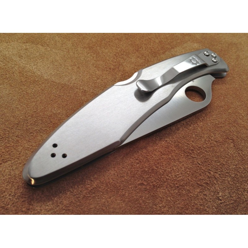 Hoja en acero VG-10 más gruesa en la punta para mayor resistencia con un reducción de peso a lo largo de la navaja. Las cachas son de acero inoxidable perfecto para el grabado o estampación.