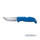 La navaja Finn Wolf ha sido diseñada por Lynn C. Thompson y Andrew Demko tomando como inspiración el cuchillo tradicional finlandés puukko. Así, se trata de una pieza muy ligera con una retención de filo excelente, que destaca por sus cachas de color azul. Además, incluye el sistema de bloqueo patentado por Cold Steel.