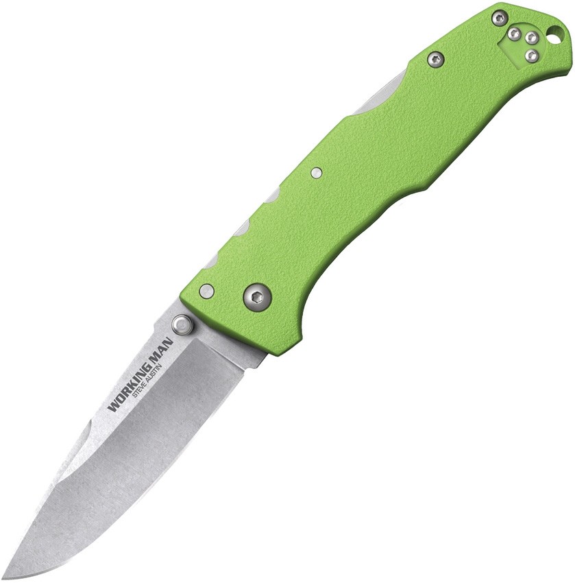 Navaja Cold Steel diseñada en colaboración con el Sr. Steve Austin con hoja de acero 4116 acabado lavado a la piedra. Cachas fabricadas en Glass Filled Nylon (GFN) de color verde. Incluye clip ambidiestro reversible. Incluye agujero para cordón fiador. Color verde.