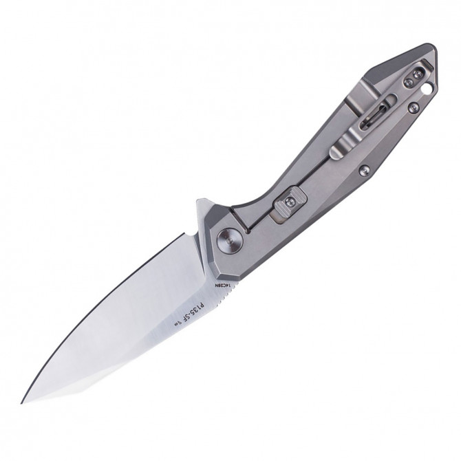 Navaja Ruike con hoja tipo drop point modificado fabricada en acero 14C28N acabado satinado. Cachas fabricadas en acero 420 acabado lavado a la piedra. Bloqueo: Frame Lock + bloqueo "Beta Plus". Incluye clip de bolsillo de acero inoxidable.