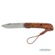 Navaja fabricada en España por la prestigiosa marca Nieto con hoja de 9,5 cm en acero inoxidable Böhler N695 y cachas fabricadas en madera de thuya. Bloqueo Piston lock. Agujero para cordón fiador. Incluye rabiza de color marrón.