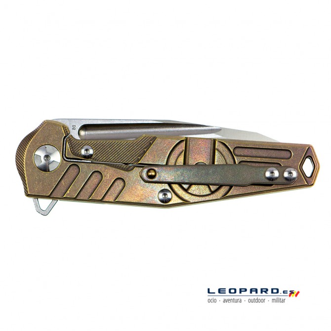 Los diseñadores de Defcon han incorporado en las tres navajas JK Radioactive Framelock un tipo de perfil Bowie, utilizado popularmente en cuchillería por la excelente variedad de cortes que permite. Dispone de un lomo con un recorrido que se recorta en dirección a la punta, que es la parte más potente de la navaja.