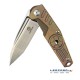 El sistema de bloqueo Frame Lock es similar al clásico Liner Lock, con la única diferencia de la sustitución de la placa de metal interna por una cacha móvil que ejerce presión constante y sostenida sobre la hoja para bloquearla contra la espiga. La acción de bloqueo / desbloqueo es completamente práctica e intuitiva.
