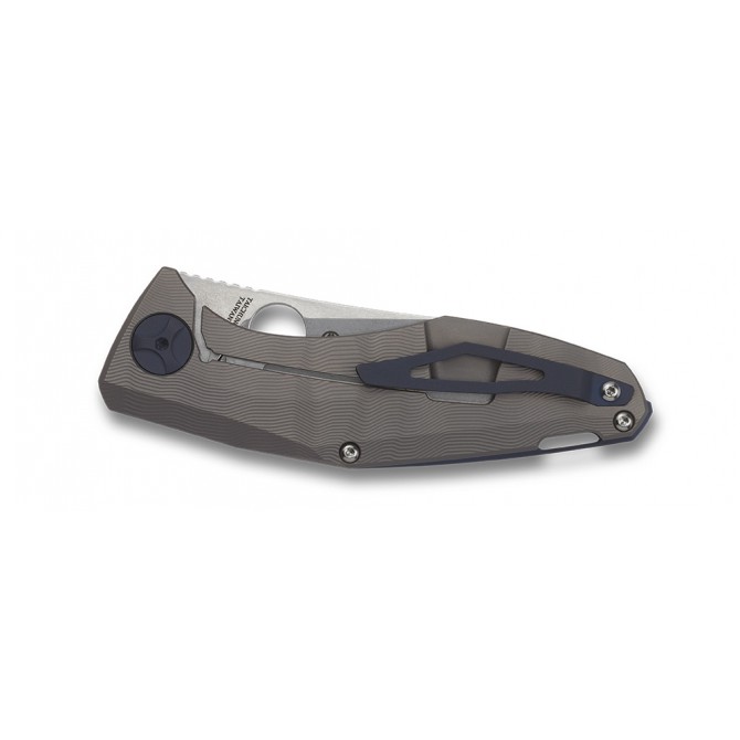 La principal característica destacable de esta navaja Drunken es el diseño innovador de sus cachas, fabricadas en una única pieza de titanio. Esta estructura aporta estabilidad y durabilidad a la navaja, ya que evitar que se separe la cacha de la hoja. Además, gracias al material con el que se ha construido, ganará resistencia ante todo tipo de golpes.