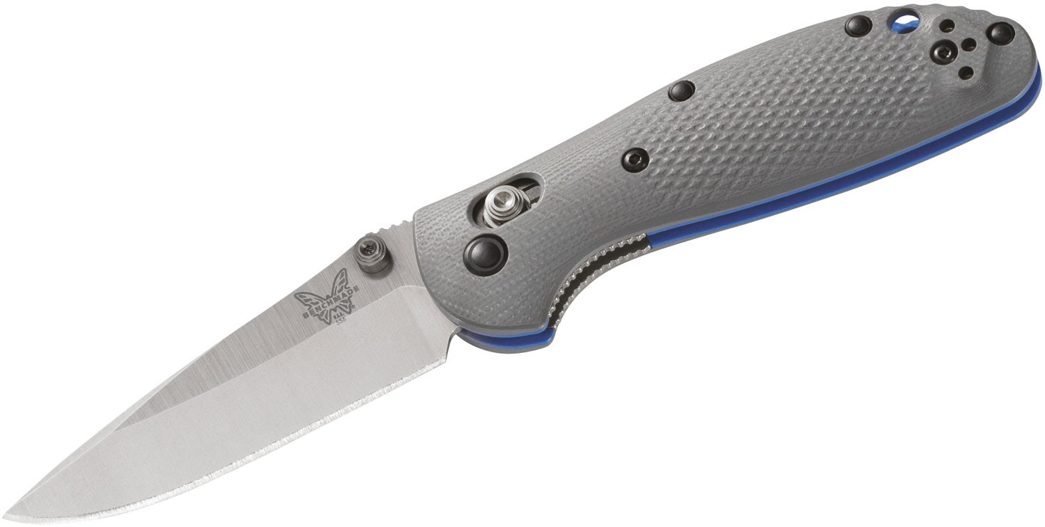 Los diseñadores de Benchmade han incorporado en las navajas 556-1 un tipo de perfil Drop Point, utilizado popularmente en cuchillería por la excelente variedad de cortes que permite. Dispone de un lomo con un recorrido que se recorta en dirección a la punta, que es la parte más potente de la navaja.