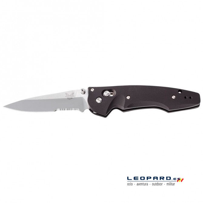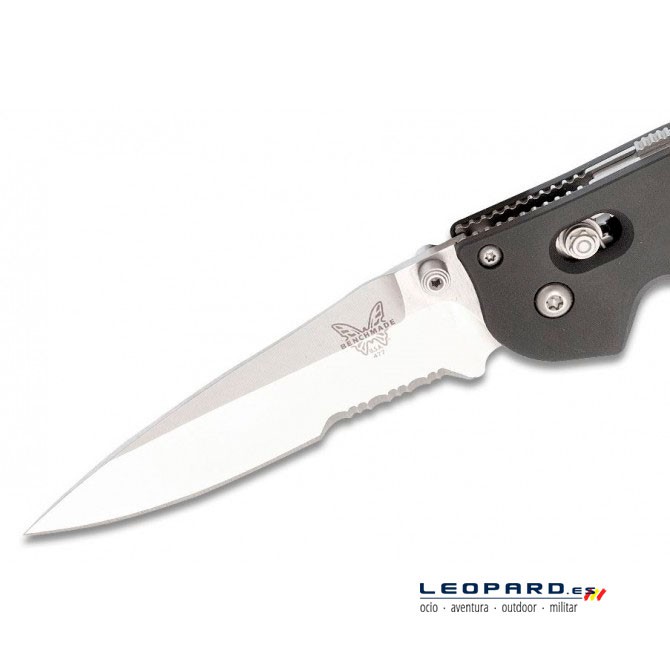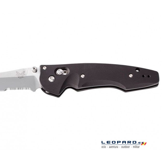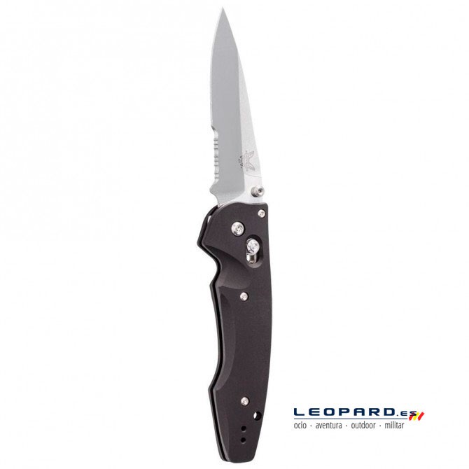 La particularidad de las navajas Benchmade reside en la tecnología Axis, un sistema de apertura-bloqueo desarrollada por el propio fabricante americano. Consiste en una barra que conecta el bloqueo con la apertura flipper, por lo que el usuario podrá abrir la navaja a una mano bloqueándose de forma instantánea.