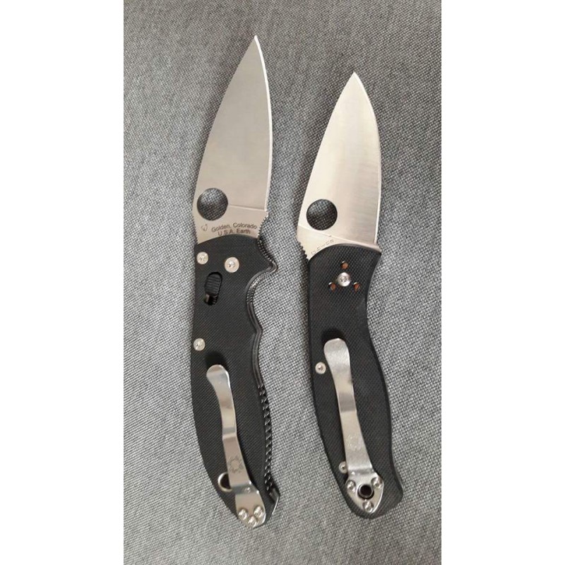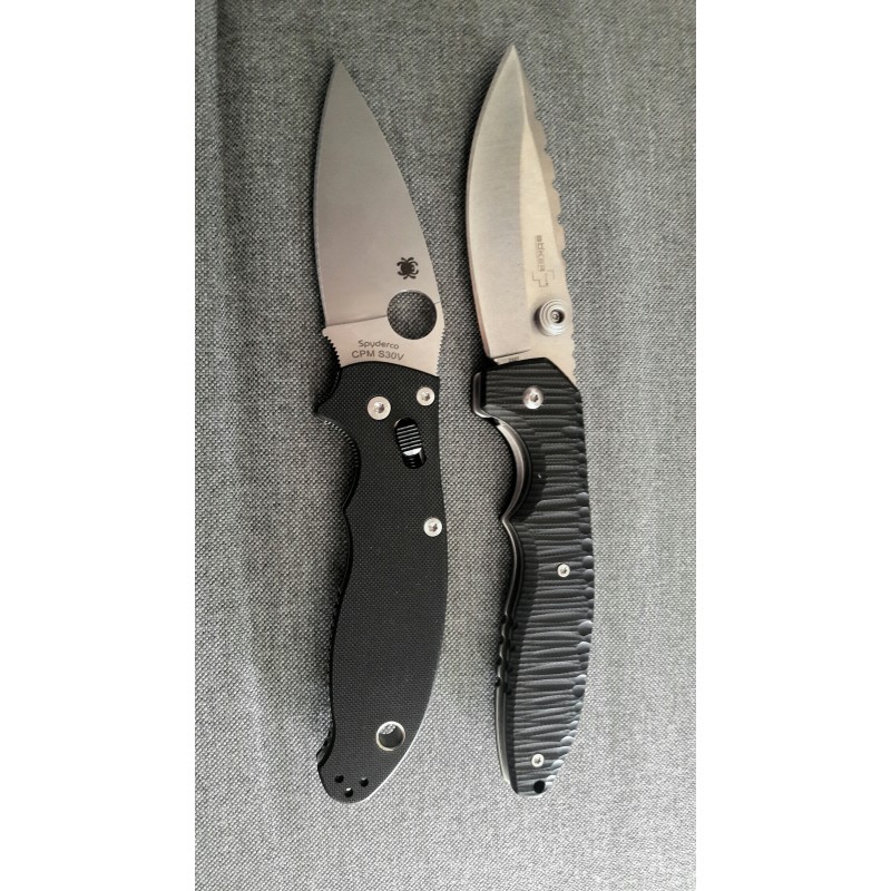 Foto comparativa de esta manix 2 plain edge con la Spyderco ambitious.Se ve claramente el tamaño más contundente de la manix